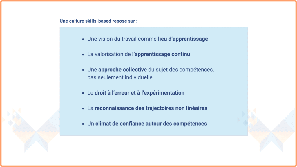 Une skills-based organization ne se décrète pas, elle se construit à partir du travail réel et non des taxonomies. Le travail est vivant et collectif. Il ne se réduit pas à des listes de compétences. Concrètement, cela implique d’aller sur le terrain, d’observer les pratiques, de comprendre les situations, les arbitrages, les compétences mobilisées au quotidien, ainsi que les aspirations des collaborateurs.